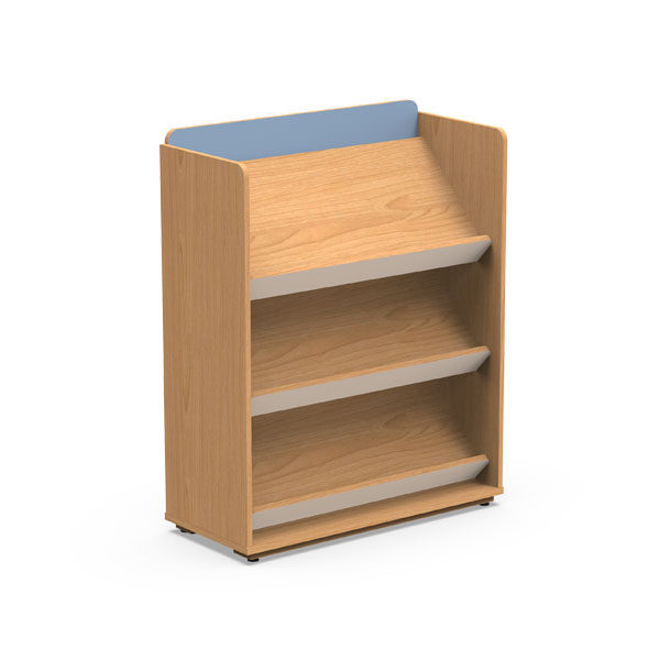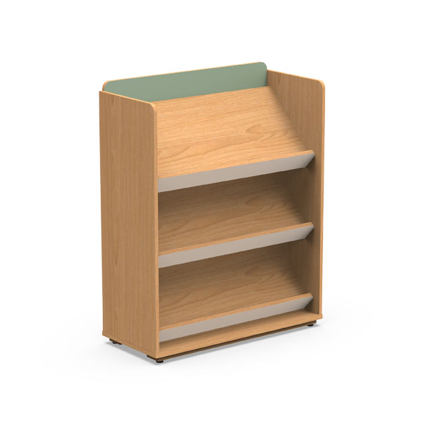 Bookcase with three slanted shelves, integrated into the bookcase set.