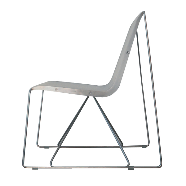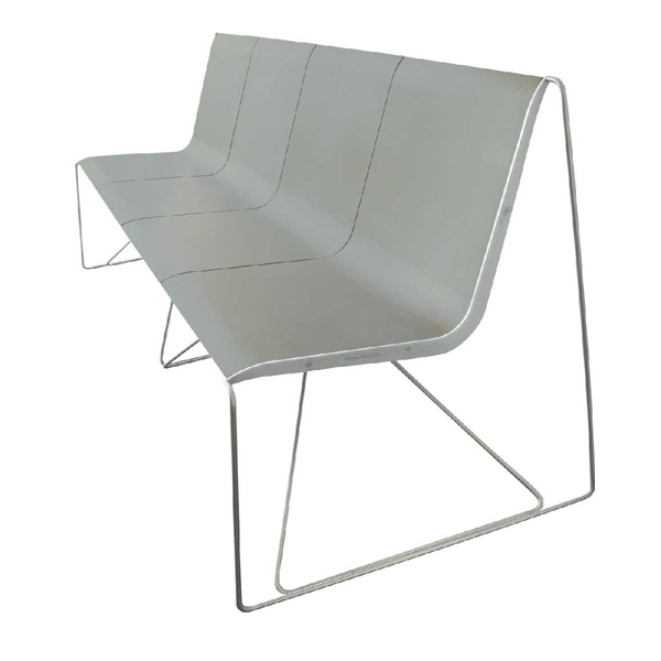 Structure in Ø 10mm stainless steel rod. Longitudinal beams in Ø 22mm tubing. Seat in 3mm brushed stainless steel sheet, double-sided.